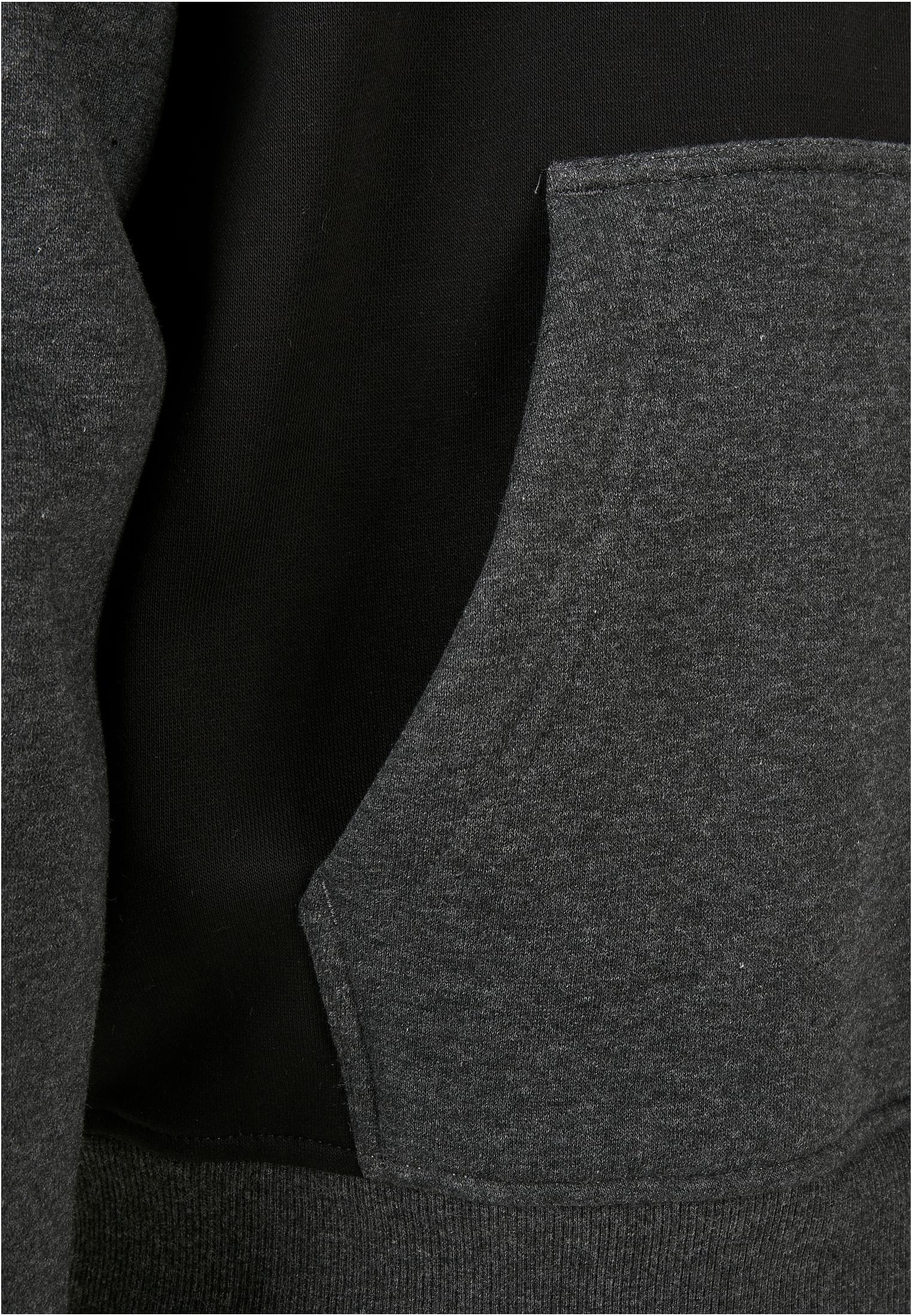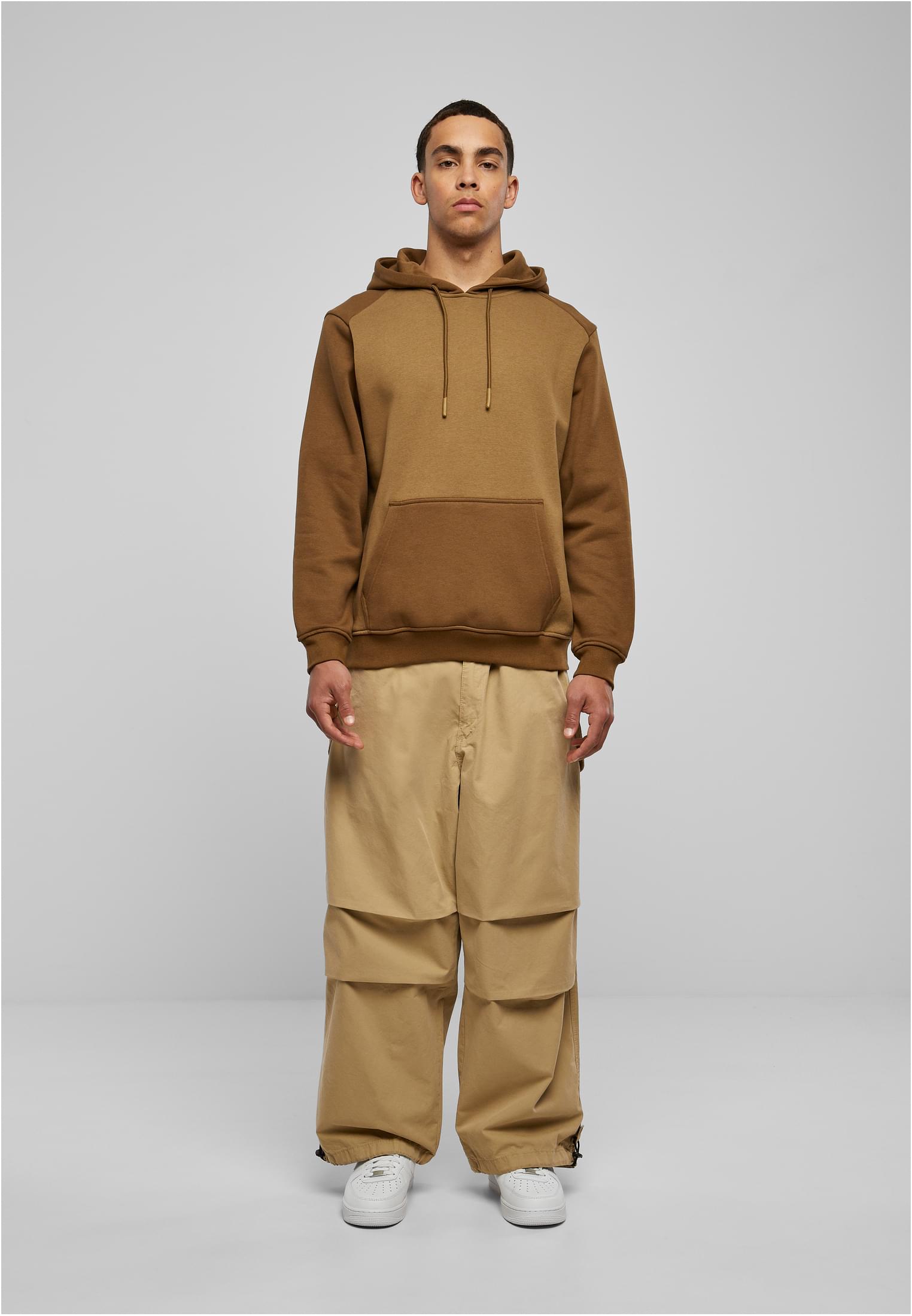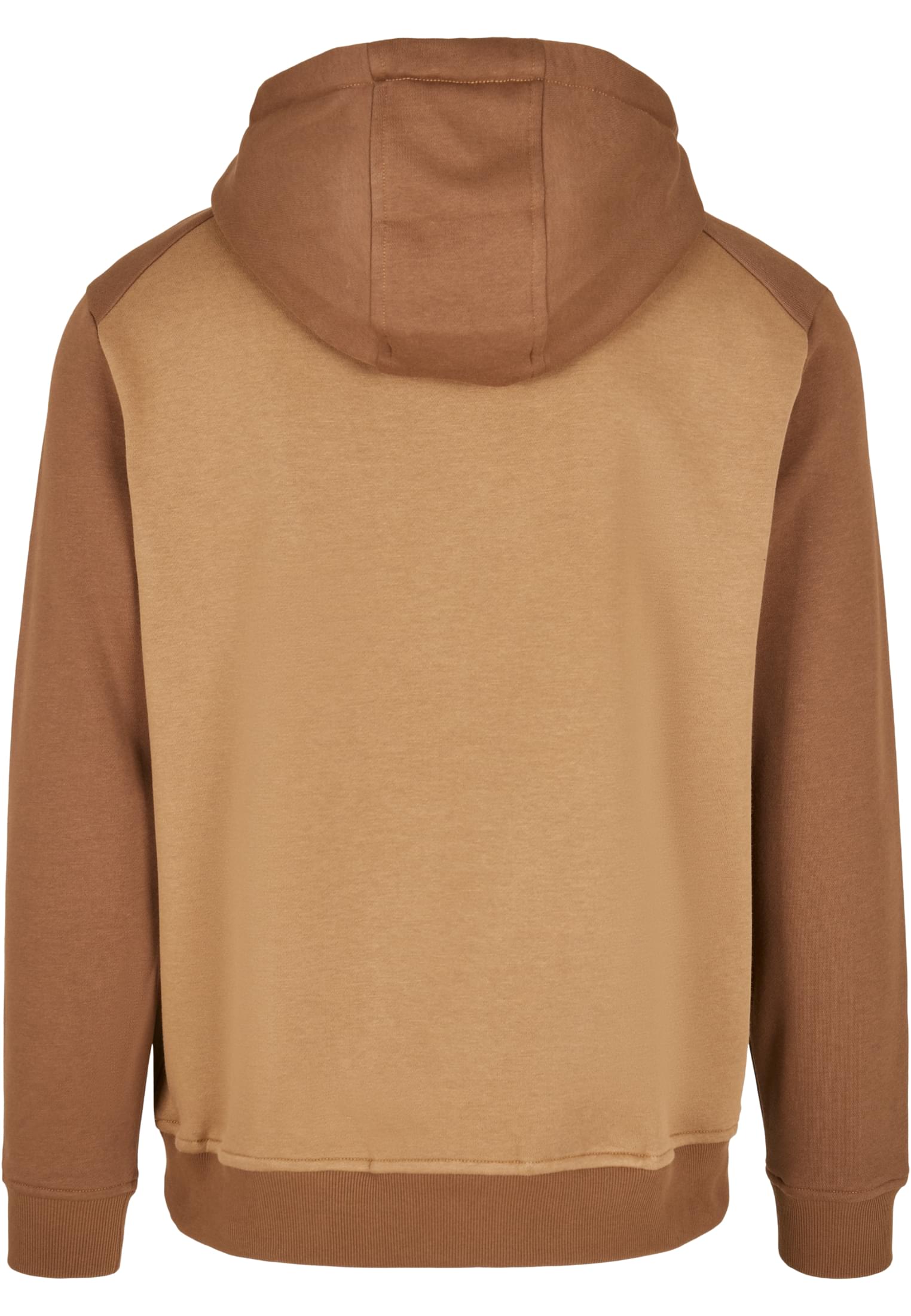 Denna hoodie för herrar kombinerar klassiska detaljer med en stilren färgkombination. Det som särskiljer modellen är de dekorativa raglanpartierna över axlarna, som ger ett sportigt uttryck. Tröjan är tillverkad i mjuk fleece med rymlig passform, och är utrustad med känguruficka, stor huva med dragsko och silikontippade ändar samt elastiska muddar i ärmslut och nederkant.