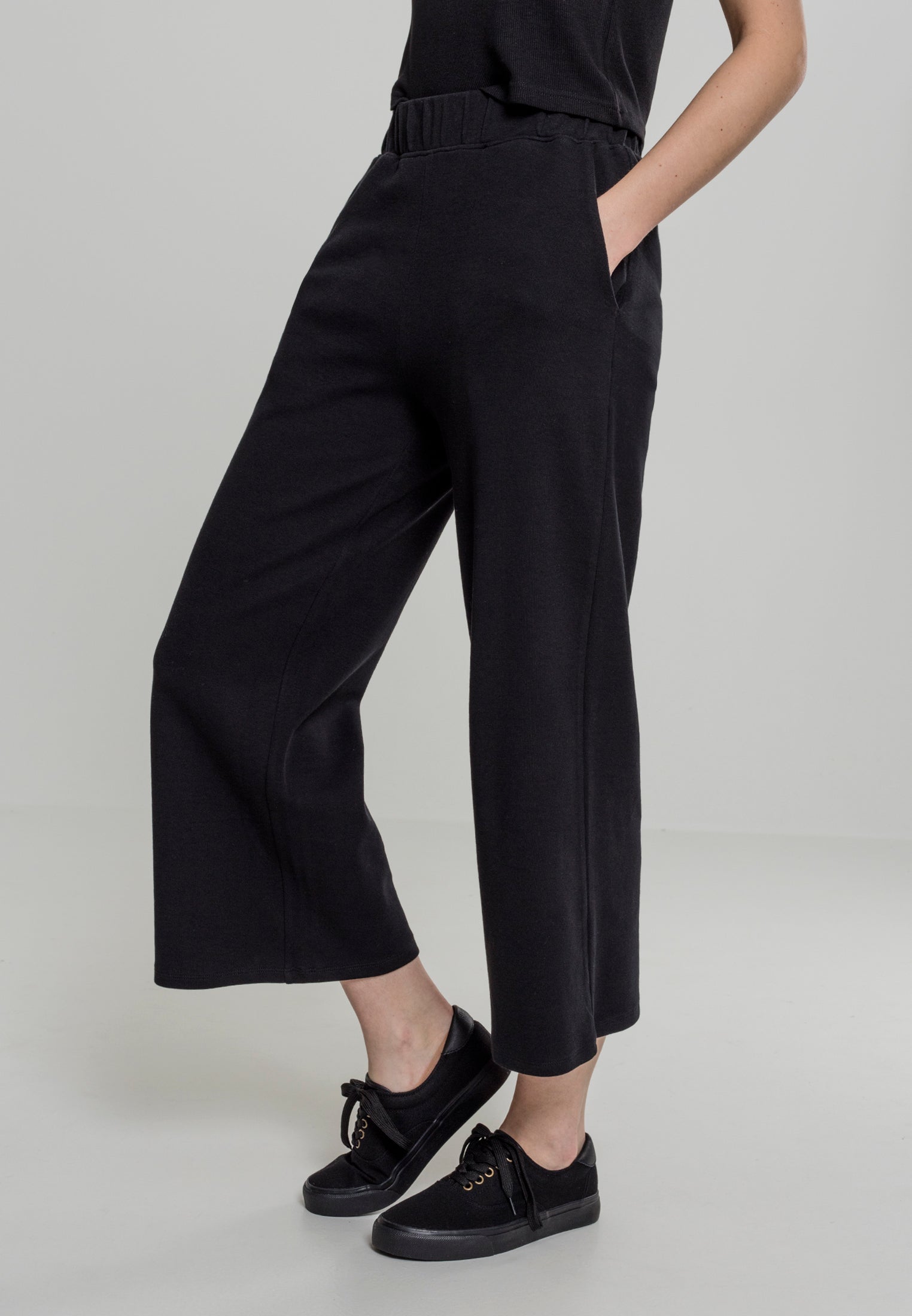 Culotte-stilade byxor är inte bara trendiga, de erbjuder också lätt och luftig komfort för den varma säsongen. Med elastiska mudd, sidfickor och en klassisk passform har dessa culottes i mjuk interlock-tyg allt som ett avslappnat basplagg behöver.