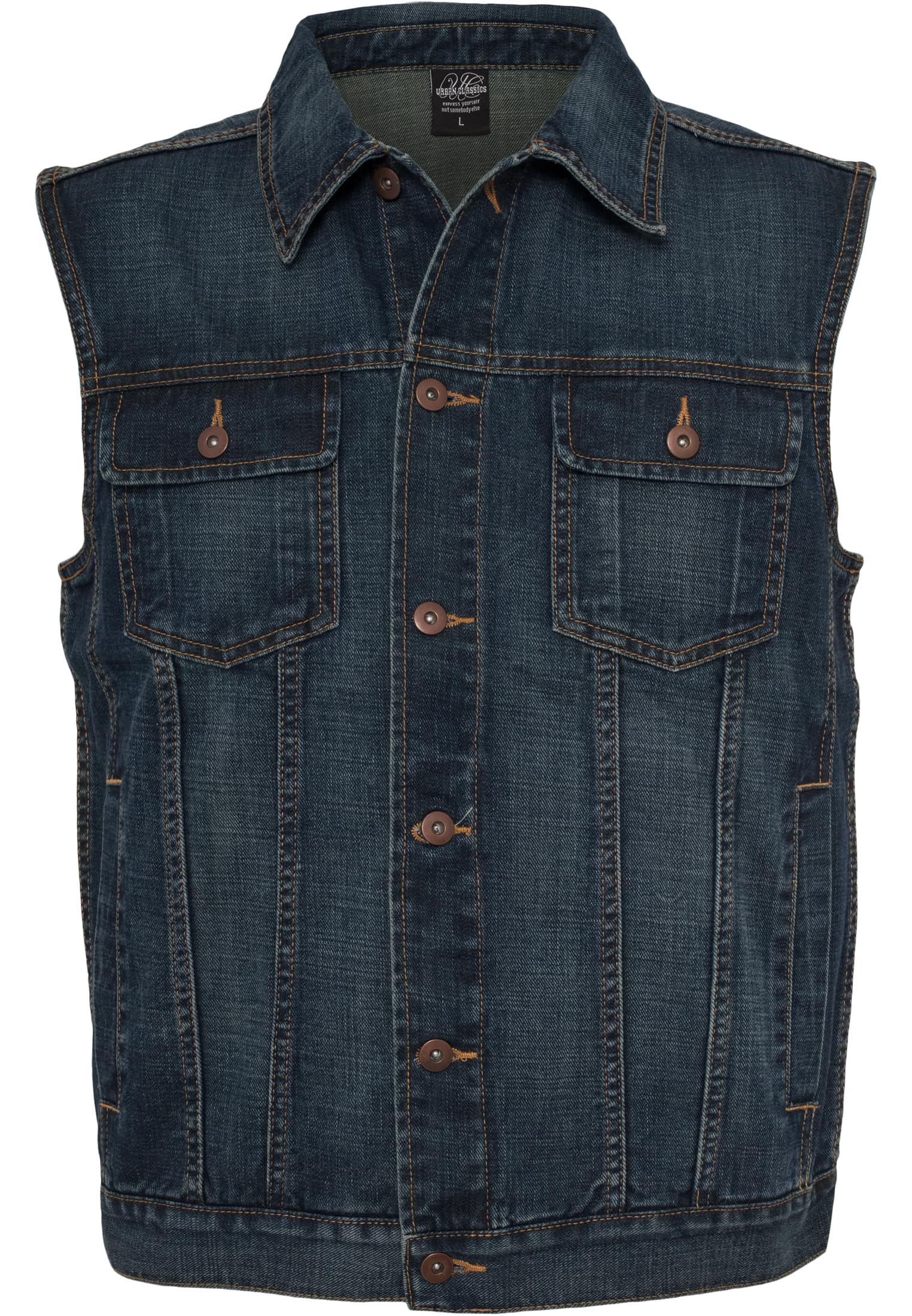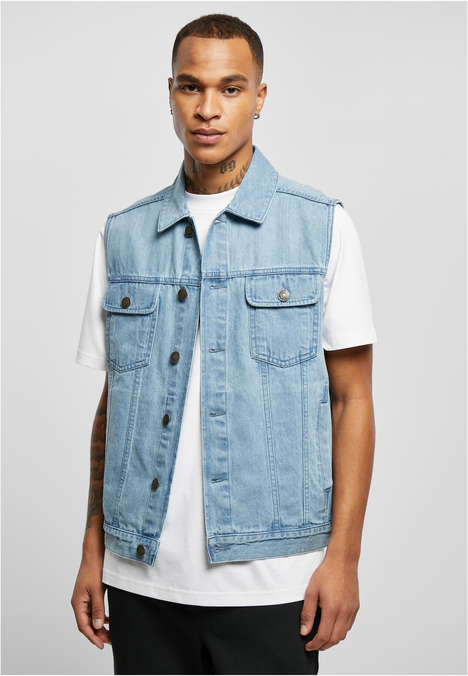 - Design: Klassisk denimväst, perfekt för lager på lager