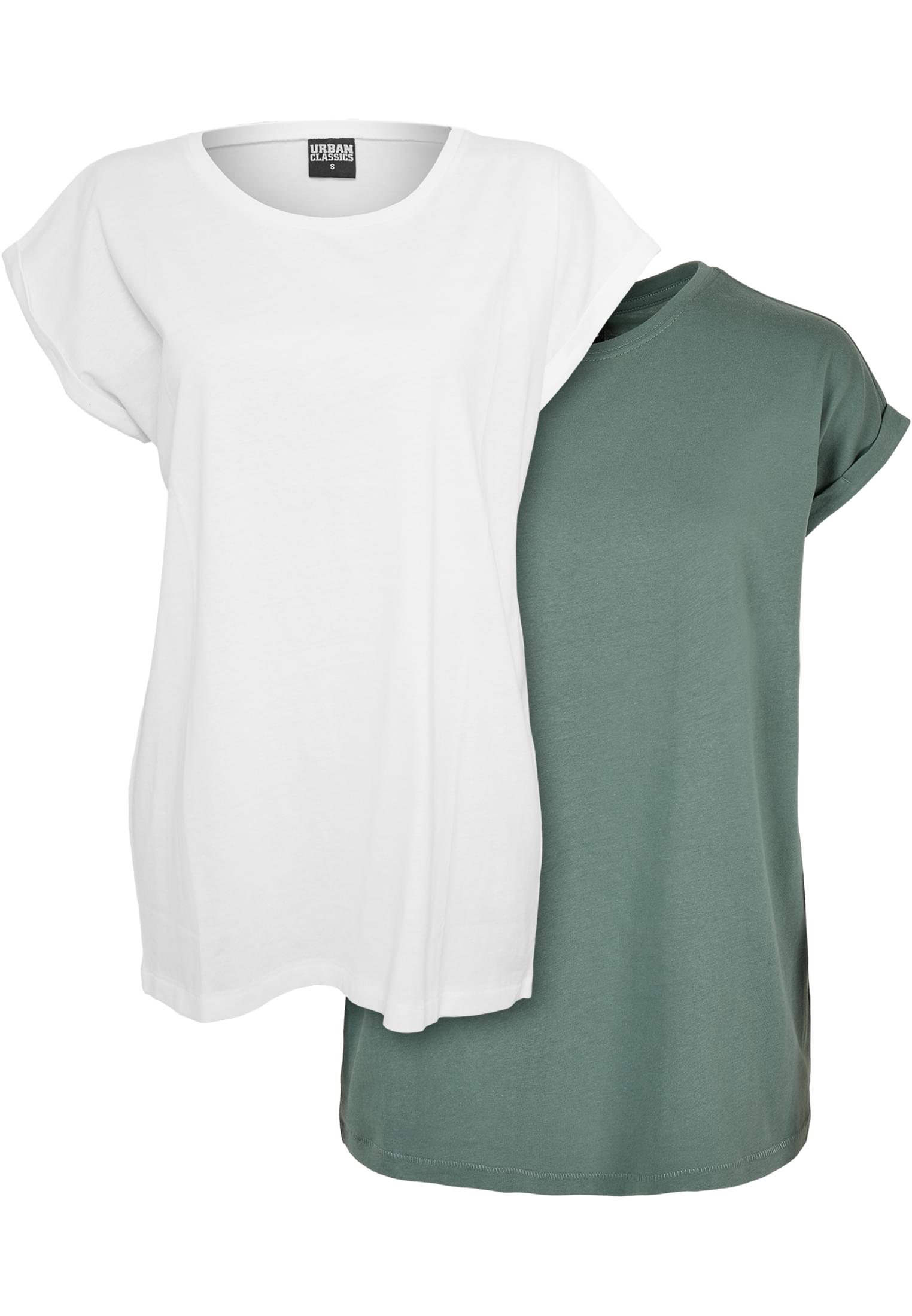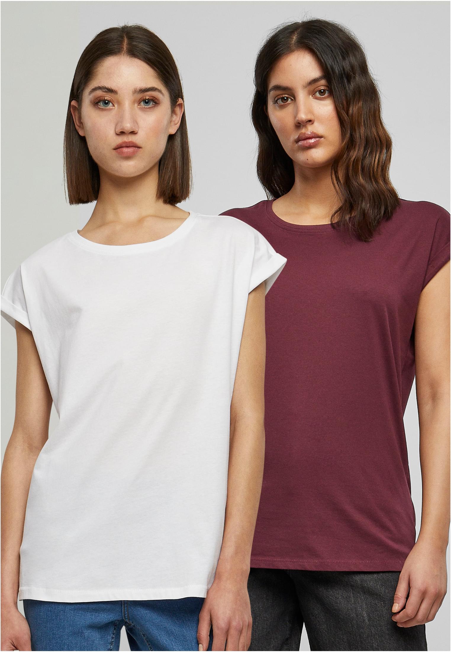 Detta 2-pack med extended shoulder t-shirts kombinerar stilren design med vardagskomfort. De förlängda axlarna ger en modern och elegant silhuett som lyfter varje outfit, oavsett om du bär dem som de är eller som ett lagerplagg. Perfekt för kvinnor som söker en mångsidig t-shirt med både trendkänsla och klassisk charm.