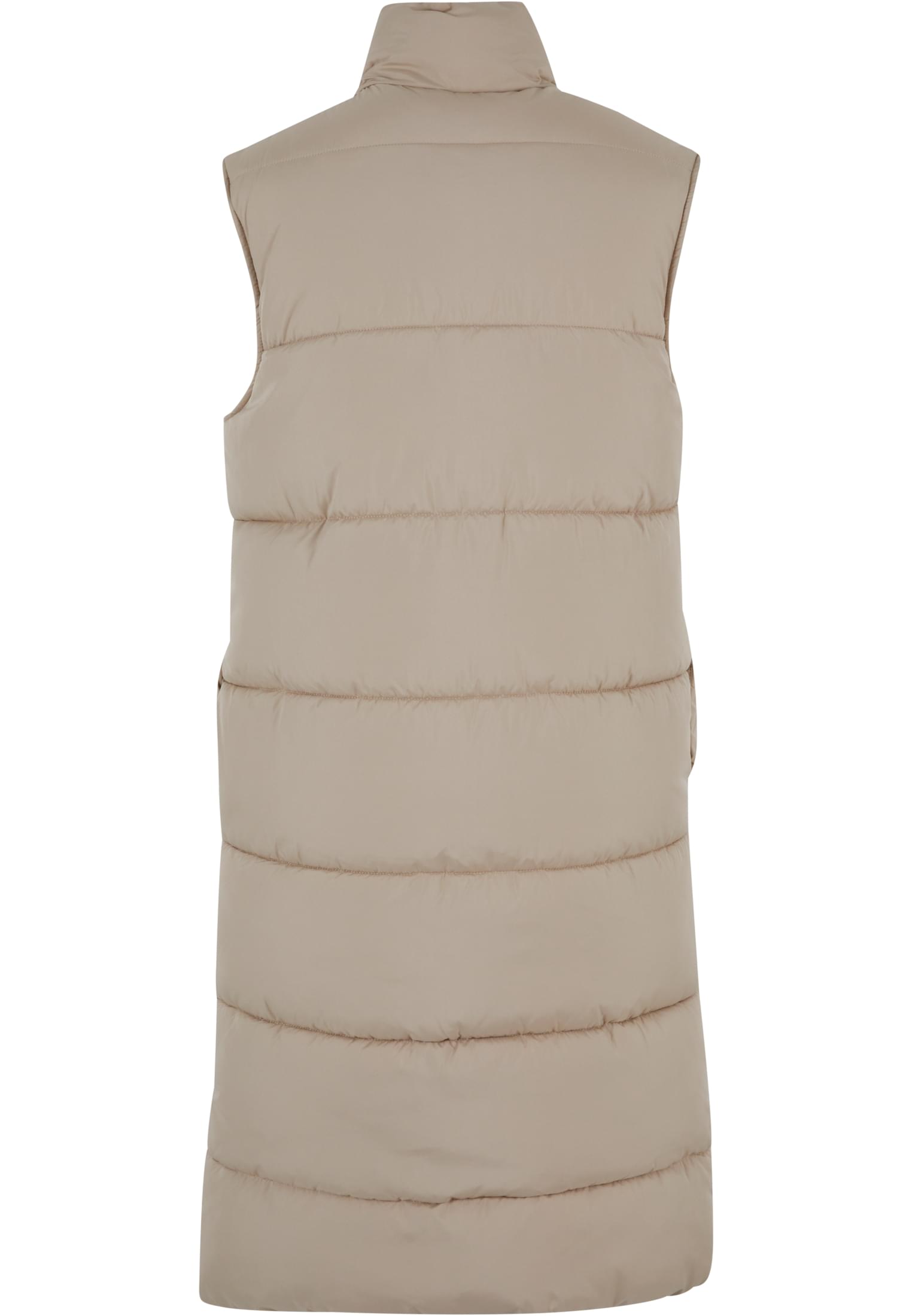 Denna långa puffer-väst för kvinnor är en fantastisk hybrid mellan en puffer-jacka och en kappa. Korssömmarna framhäver den kraftiga quiltningen och ger den klassiska puffer-looken. Den ovanliga klädesplagget har också en imponerande längd som når ner till knäna. Västens höga ståkrage, sidofickor och dragkedja gör det enkelt att ta på sig. Den lösa passformen ger extra komfort, och det robusta Terylen-materialet samt foder i taffeta gör västen både hållbar och bekväm.