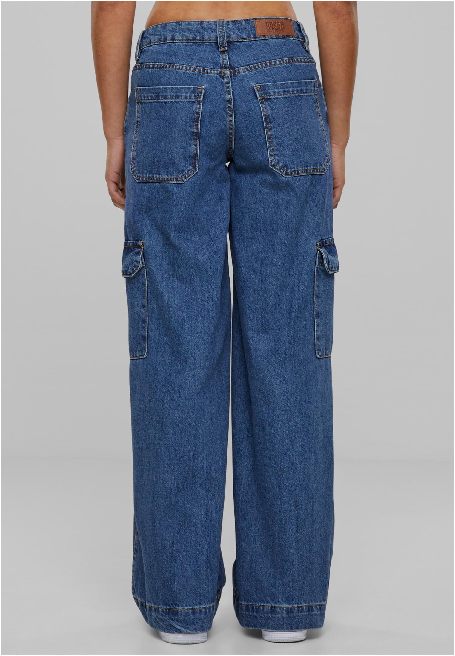 Dessa kvinnors cargojeans är tillverkade i robust bomullsdenim och har en låg midja som sitter bekvämt på höfterna. De breda och raka benen är designade med cargo-fickor och inlägg vid knäna. Sidofickor och patchade bakfickor fulländar designen. Byxorna har en lös passform, vilket ger både komfort och stil.