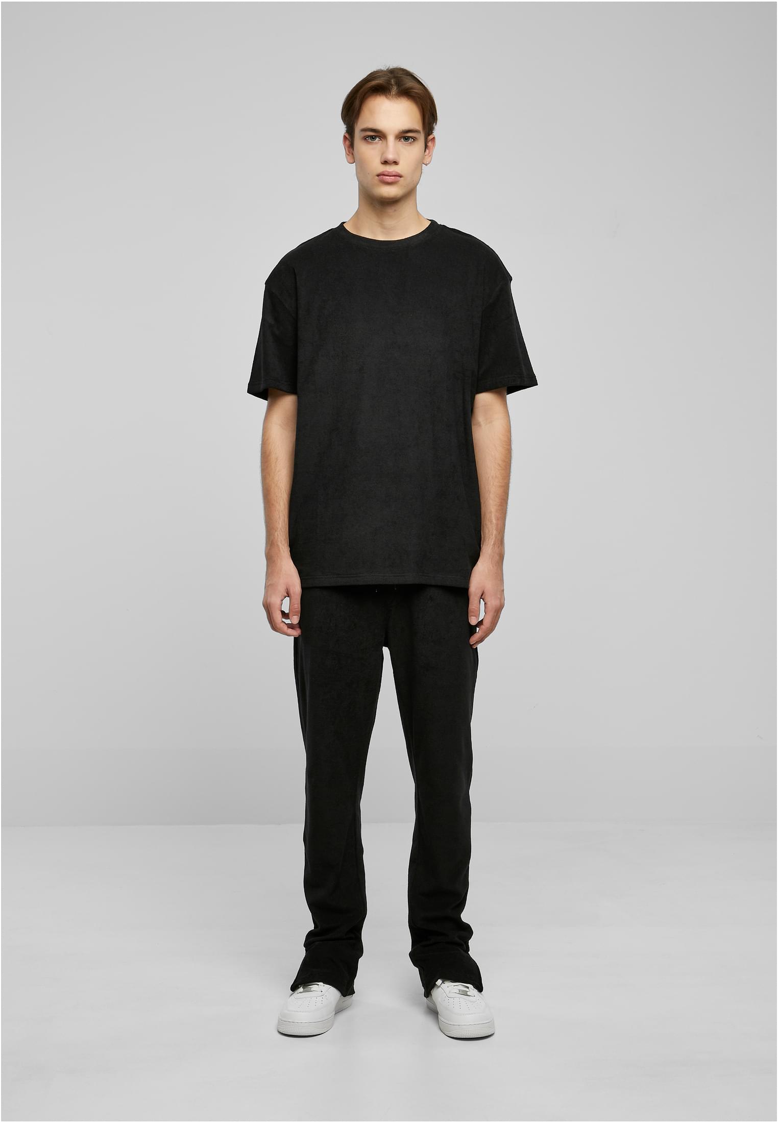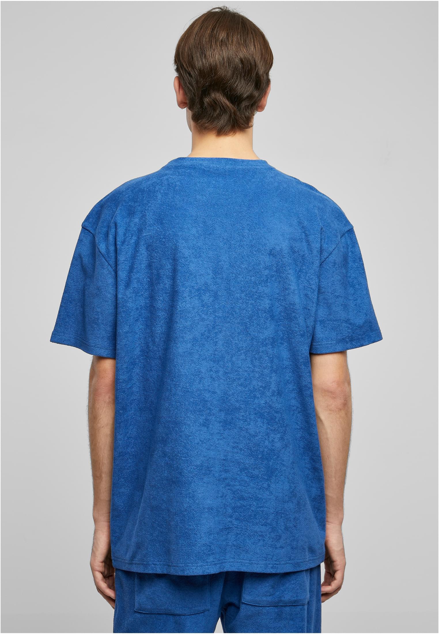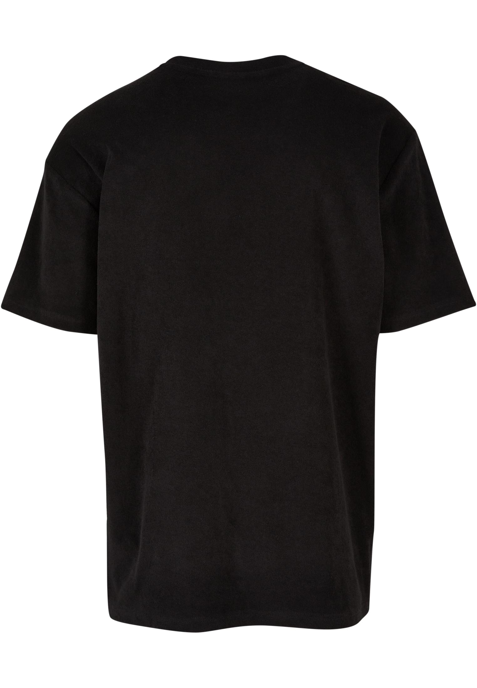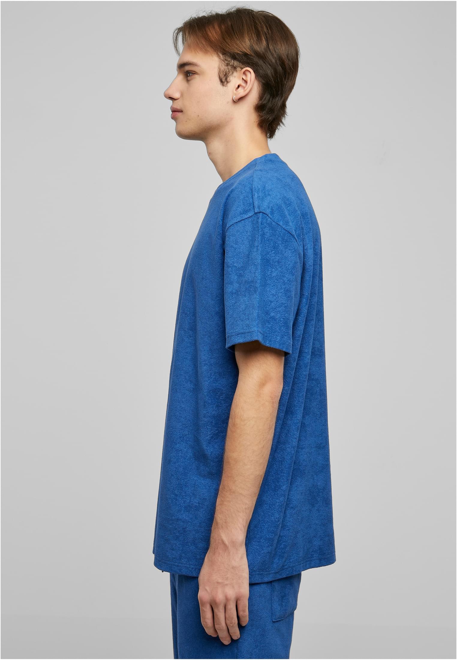 Denna ensfärgade t-shirt för herr är designad i en avslappnad oversize passform med nedhasade axlar, samt med en klassisk rund hals och ärmar som slutar strax ovanför armbågen. Den speciella bärkomforten kommer från det använda handduk-bomullsmaterialet.