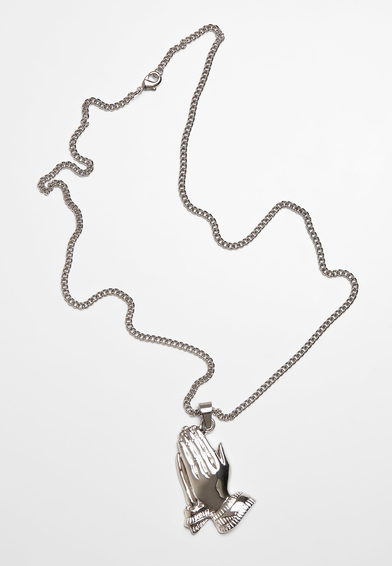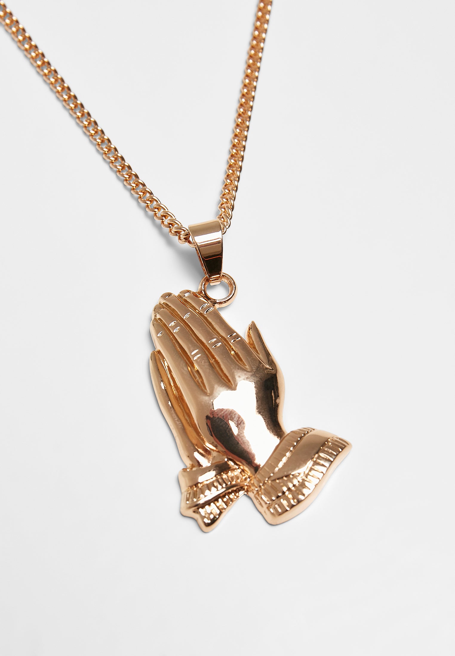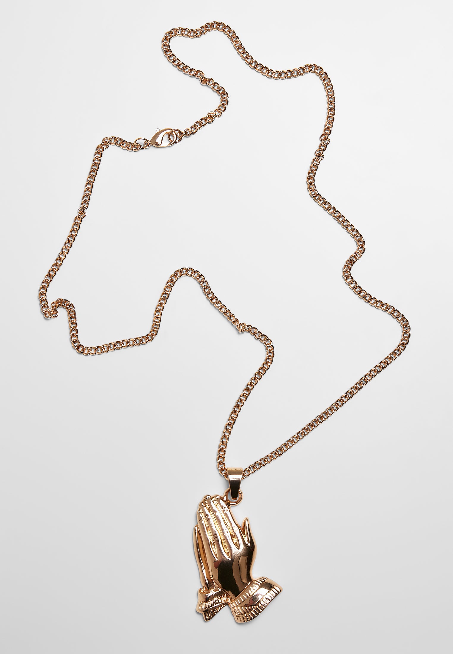This fine link necklace features an eye-catching pendant in the form of two praying hands. The hip accessory is made of iron and a zinc alloy. The necklace perfectly complements any street style outfit with that certain something.
