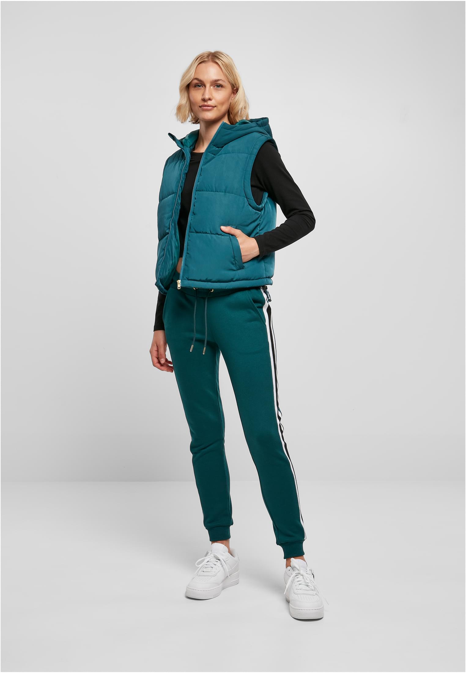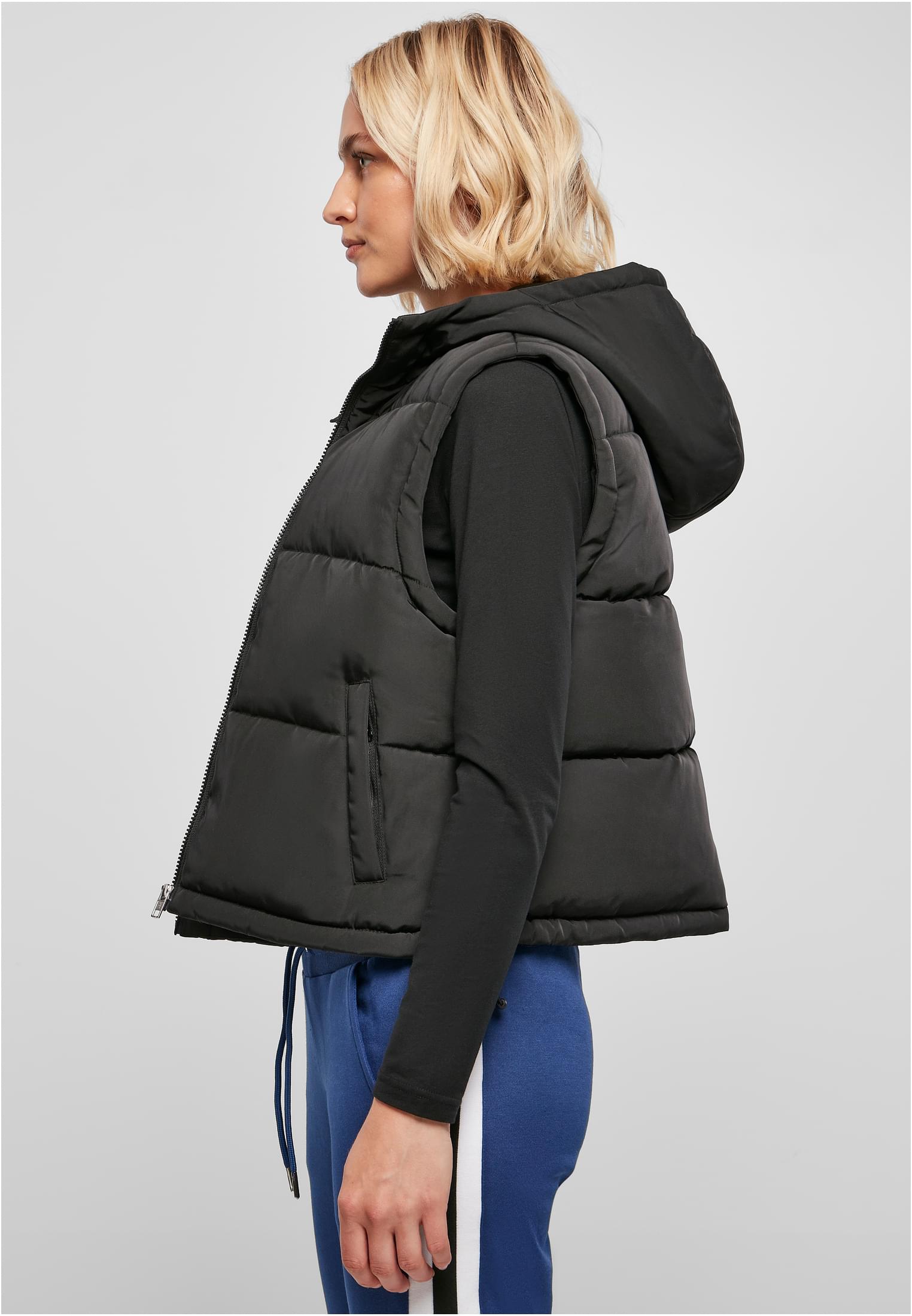 Denna väst för damer är en perfekt tillskott till varje urban modegarderob. Den är vadderad med stora kviltade sektioner och erbjuder en generös huva för extra värme och skydd. Västen har sidfickor, dragkedja och en fåll med integrerade dragsnören och stopp för att justera passformen. Designen är komplett med ett enkelt men funktionellt utseende, vilket gör den till en stilren och praktisk lösning för kallare dagar. Västen har en regular fit och är tillverkad av återvunnen polyester twill, med en mjuk tafetta-foder.