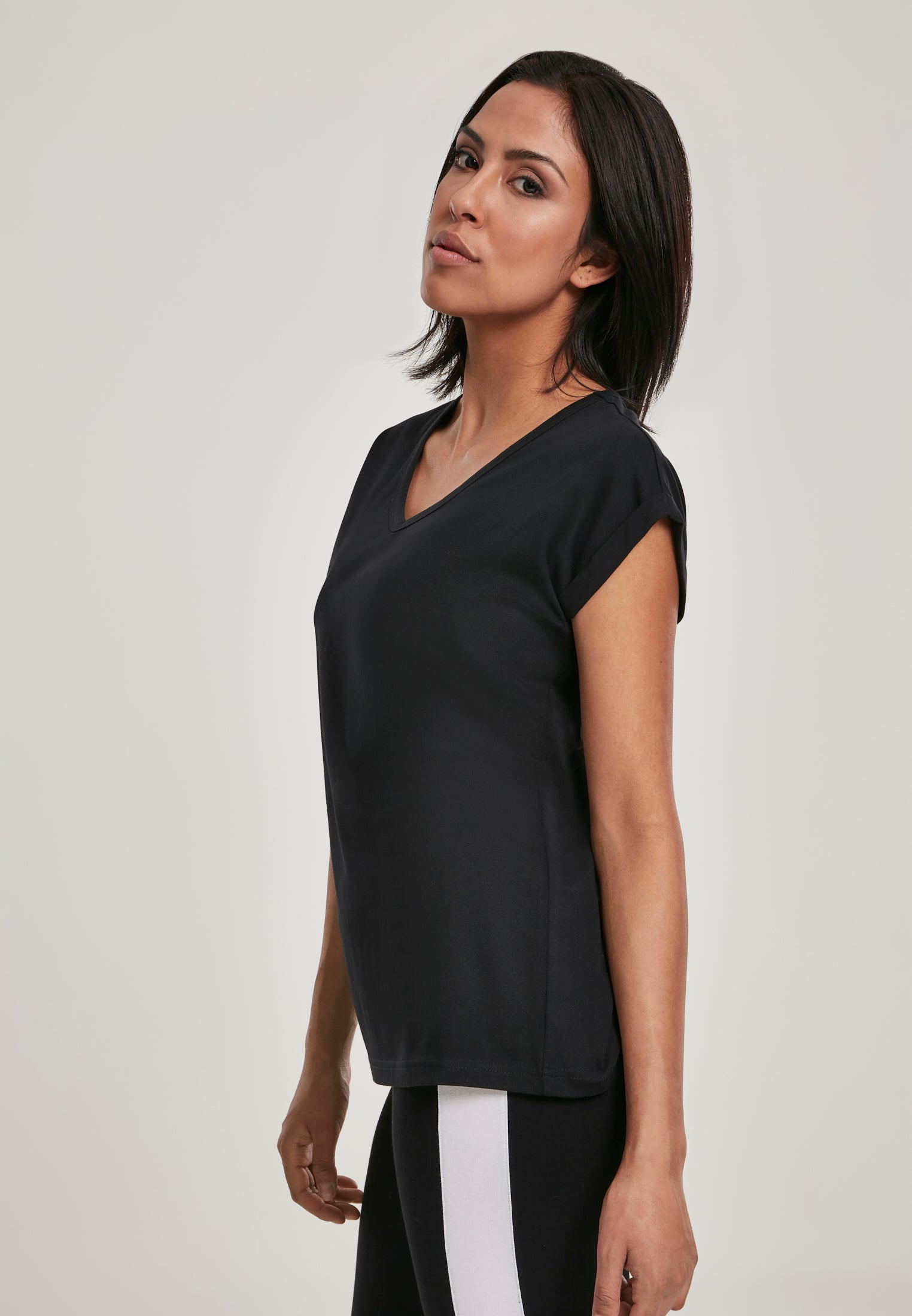 Round V-Neck Extended Shoulder Tee