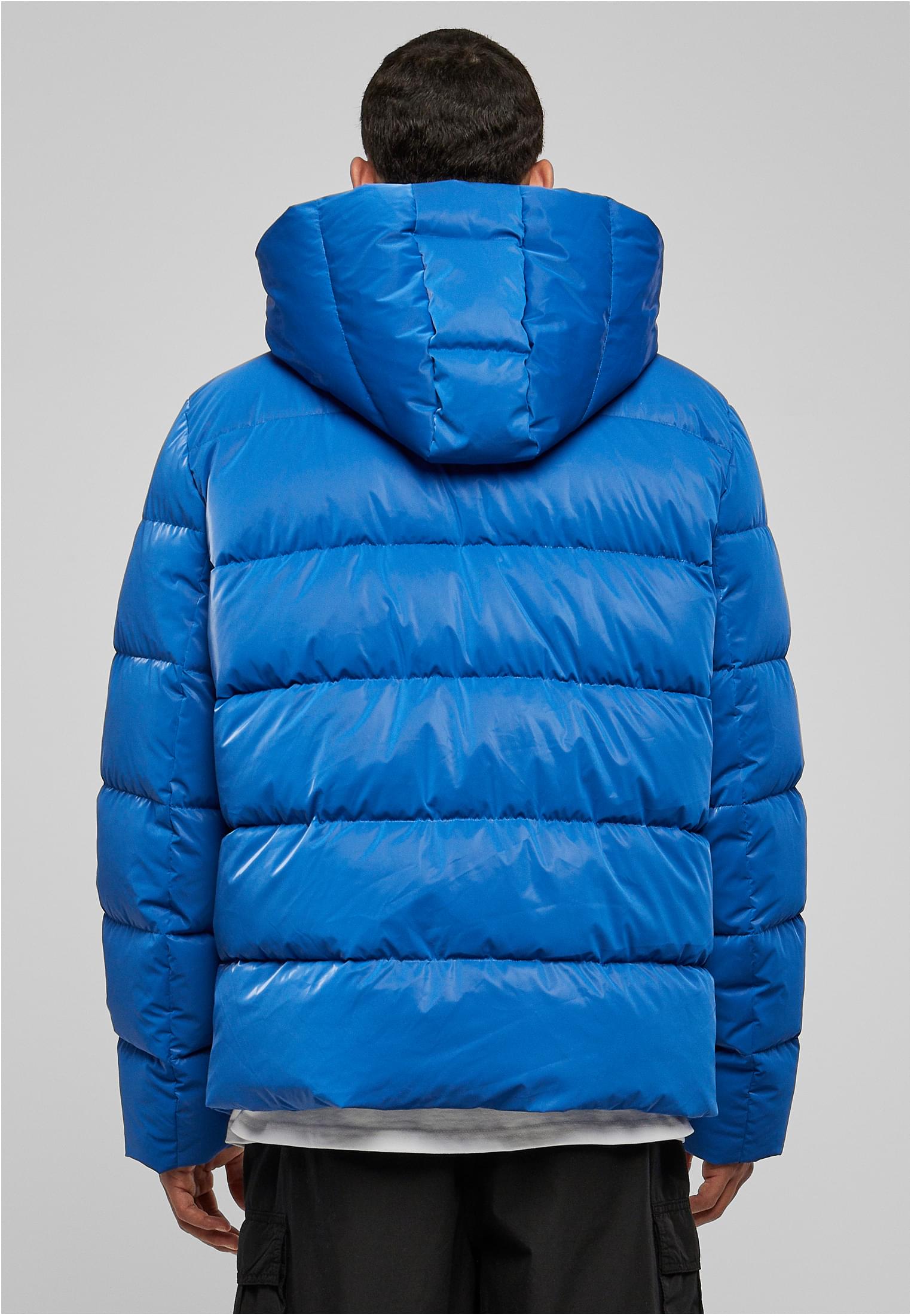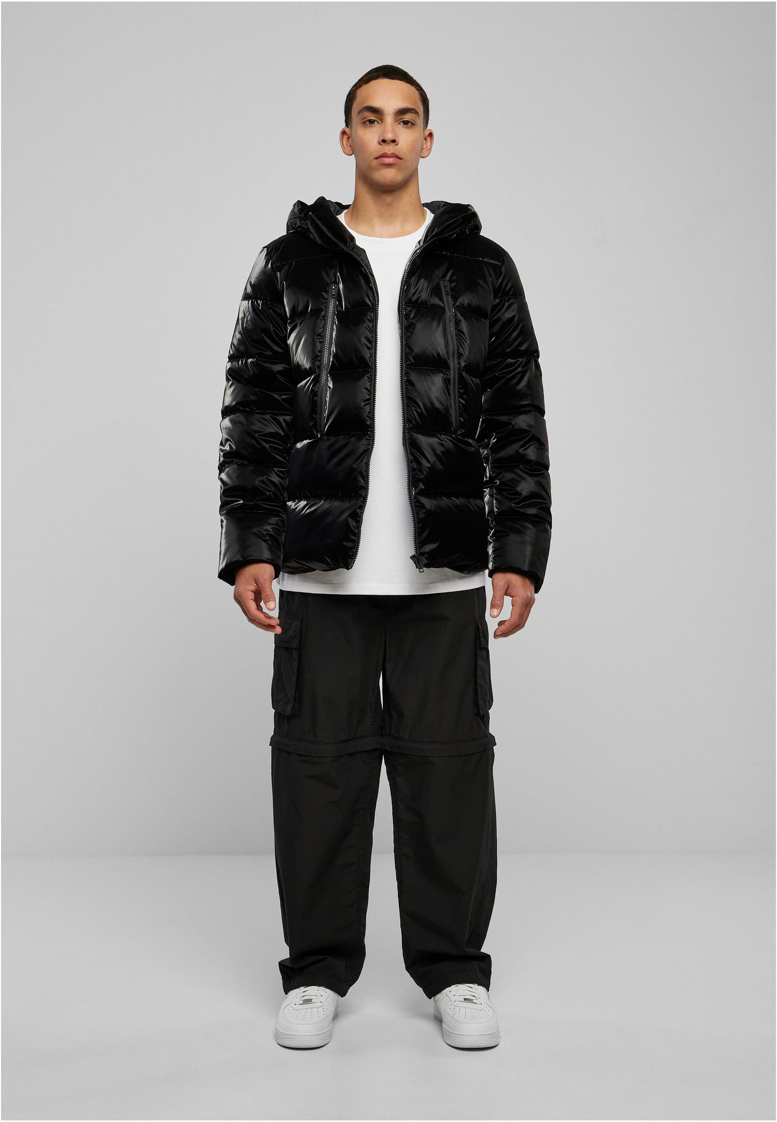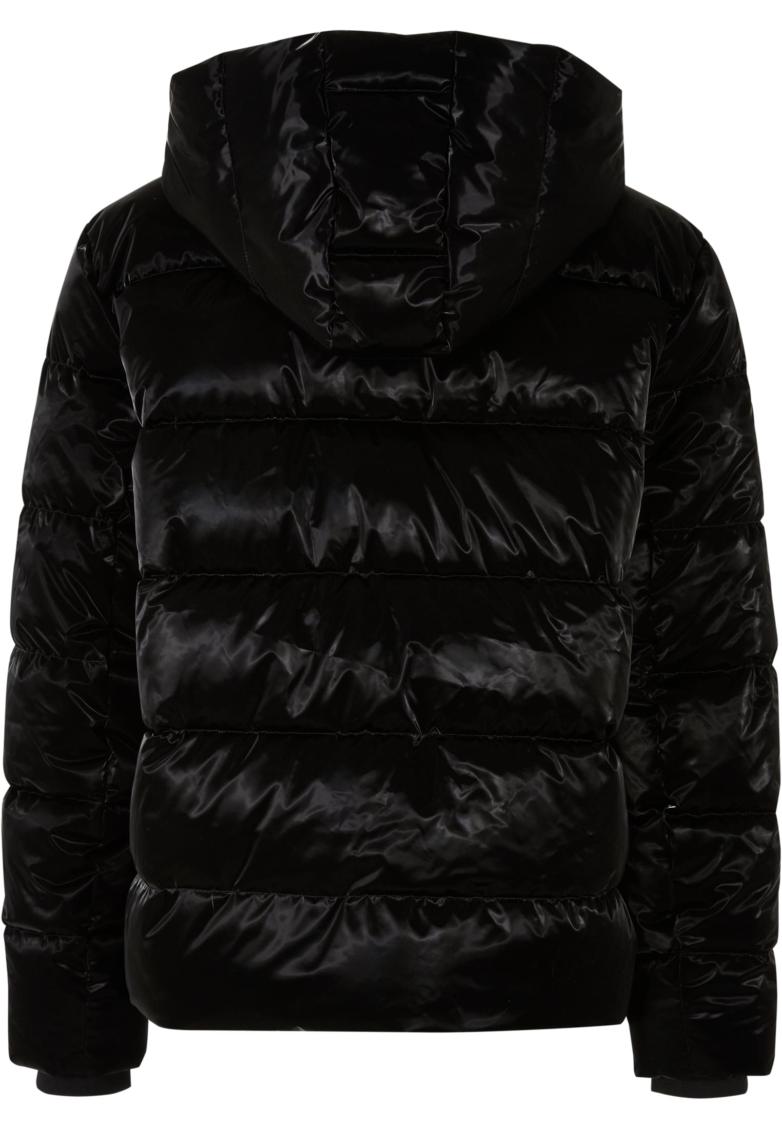 Denna pufferjacka för män skapar en imponerande stil med sitt tunga quiltade material och det glänsande, särskilt starka yttertyget i hajskinnslook. Jackan är noggrant fodrad med taffeta, har sidofickor med dragkedjor, en inre ficka och en framficka med dragkedja. Huvan på jackan samt nederkanten kan justeras med elastiska snoddar och stopper. Ribbstickade muddarna fulländar stilen och passformen är regular.