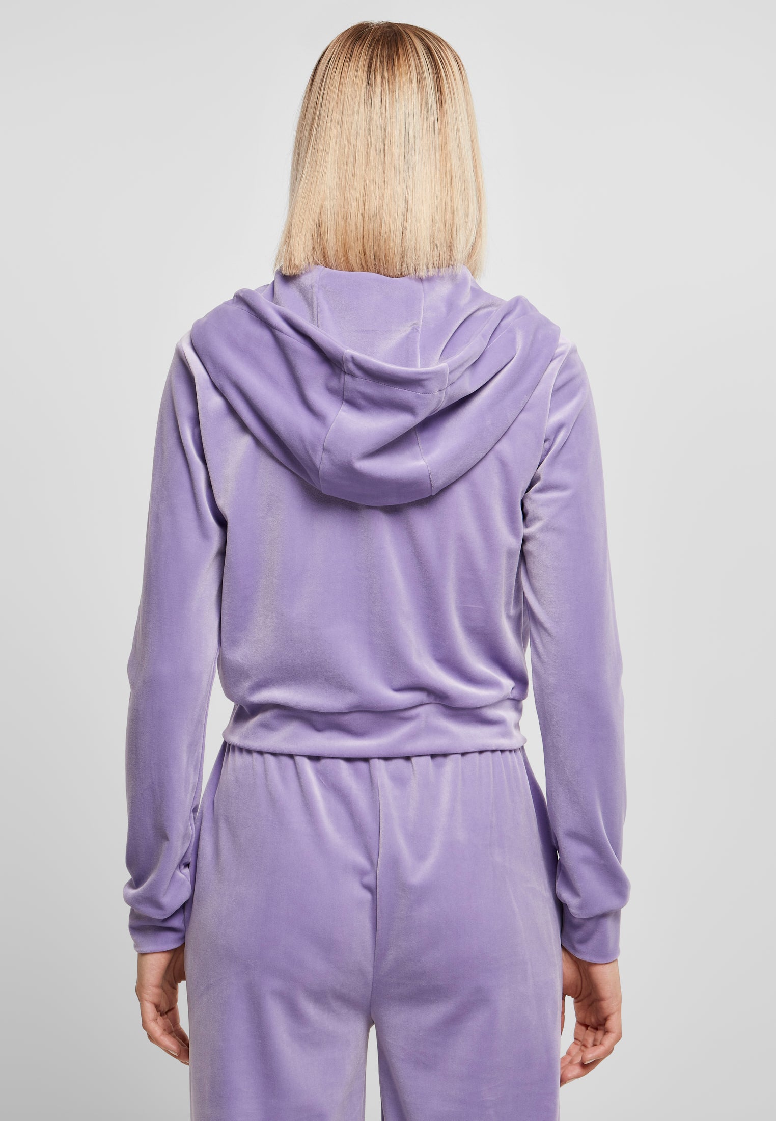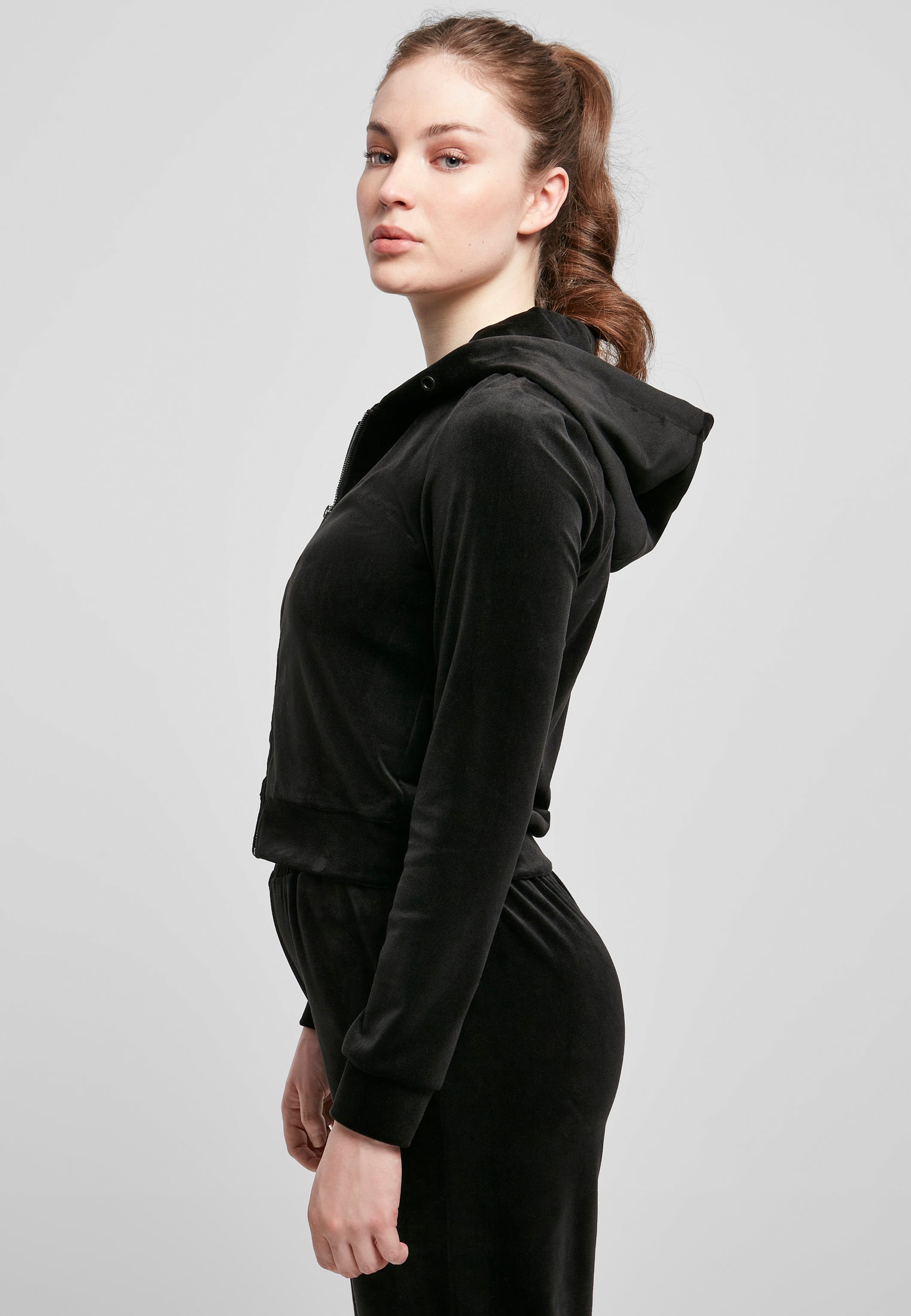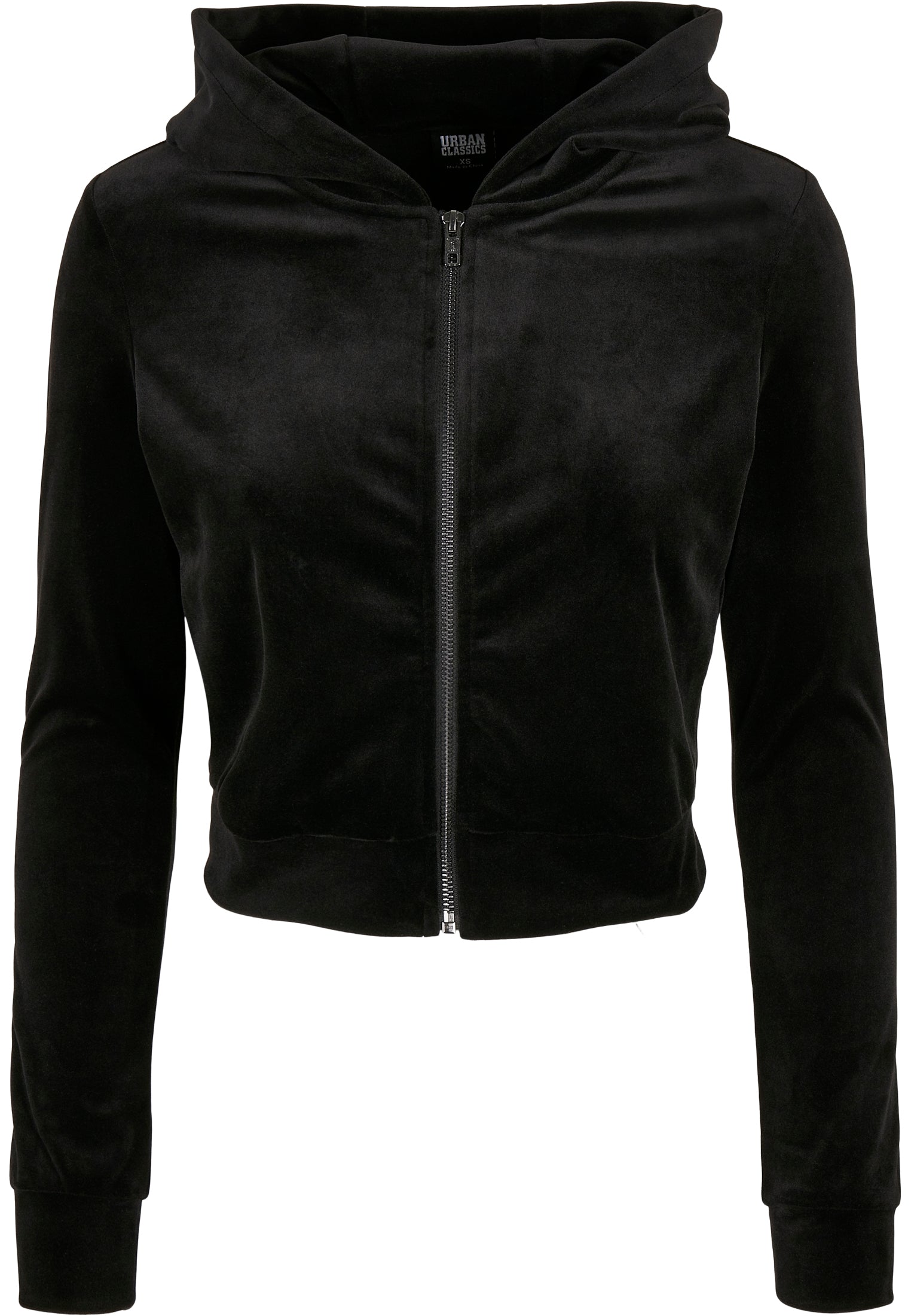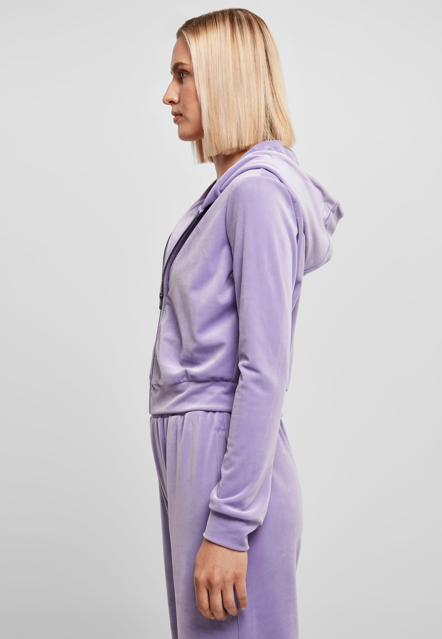 Ladies Short Velvet Zip Hoody kombinerar komfort och stil med sitt mjuka stretchvelourmaterial. Denna feminina hoodie har en dragkedja, en mysig huva och breda, elastiska muddar på både ärmar och fåll. Den extra korta skärningen ger en trendig touch, perfekt för den som söker en stilfull och samtidigt bekväm hoodie. Den reguljära passformen ger komfort samtidigt som den behåller en stilren silhuett.