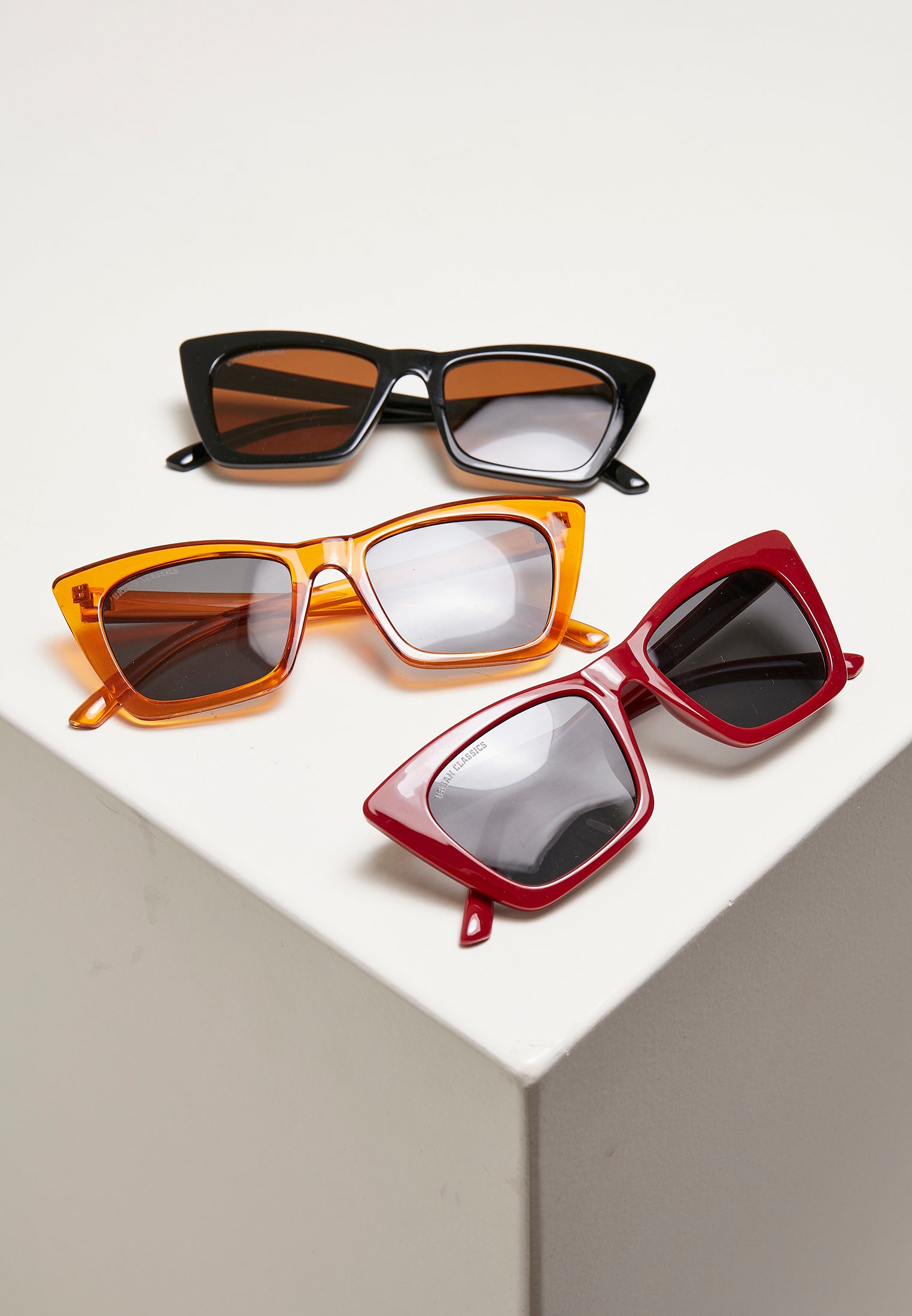Detta värdepaket erbjuder tre klassiska solglasögon i olika färgalternativ. De tonade rektangulära linserna framhävs av en lätt svepning vid de övre hörnen, inspirerade av en kattögonform. En kontinuerlig, medelbred båge omger linserna harmoniskt. Solglasögonen från Urban Classics är tillverkade av polykarbonat och koppar för hållbarhet och stil.