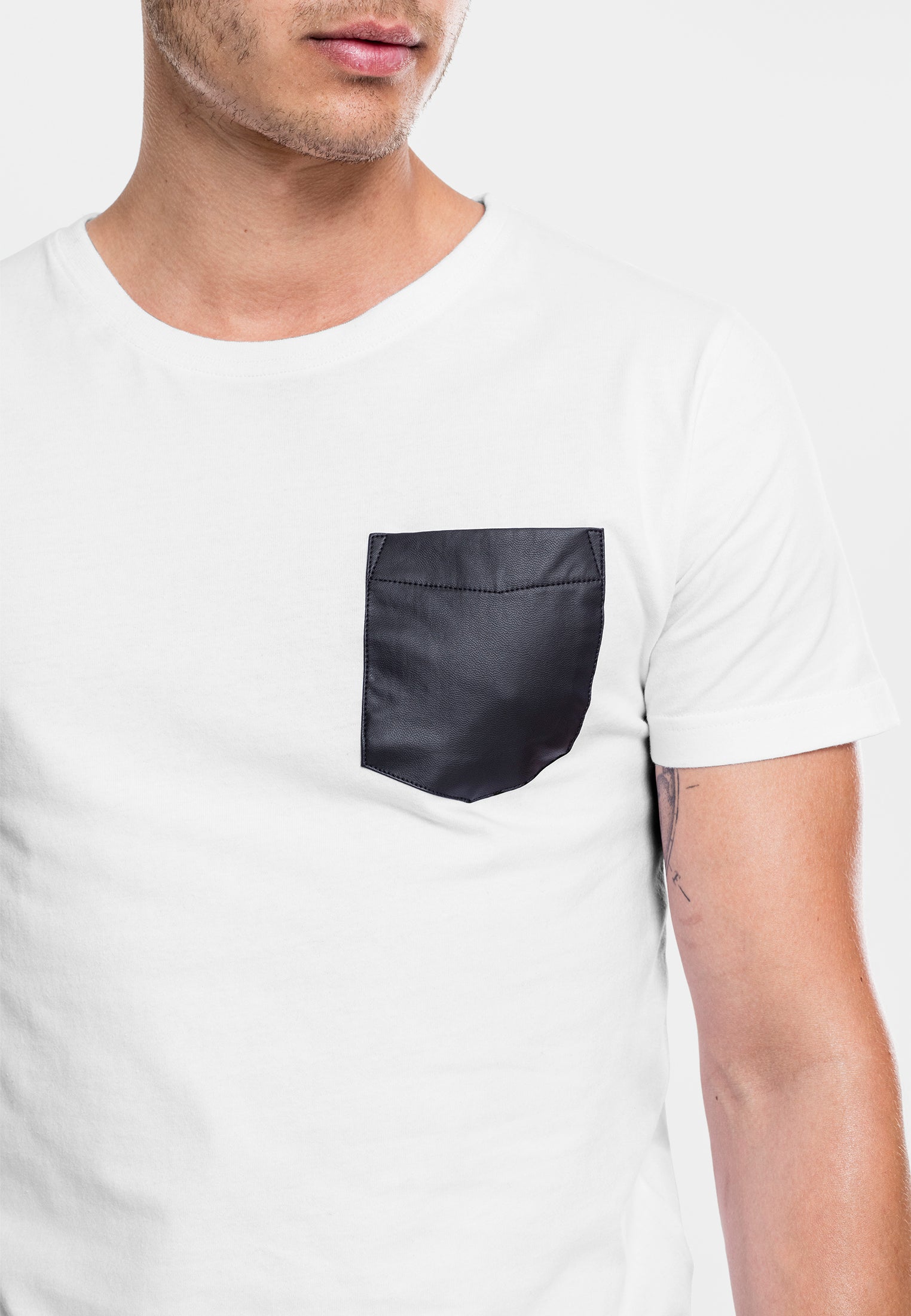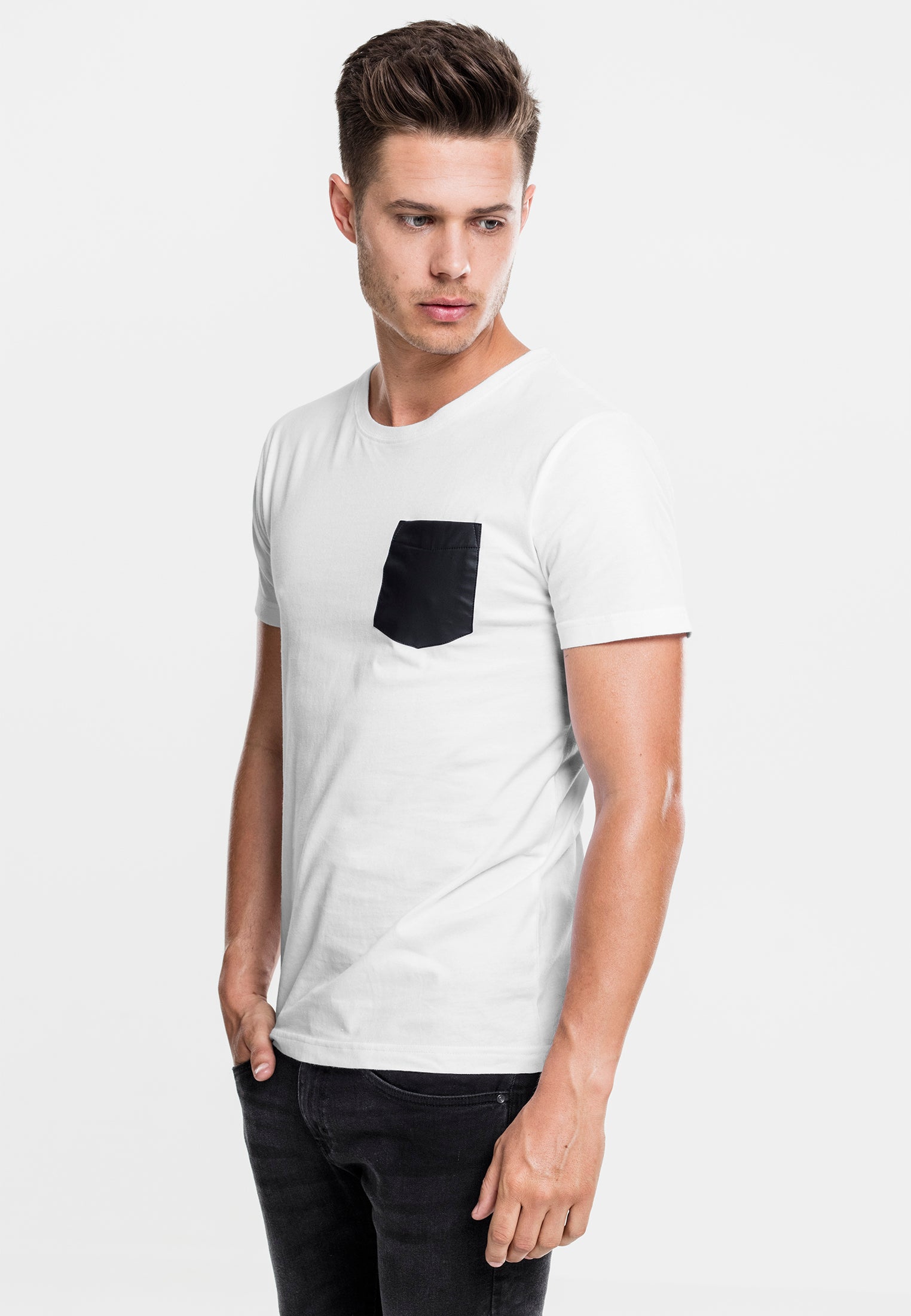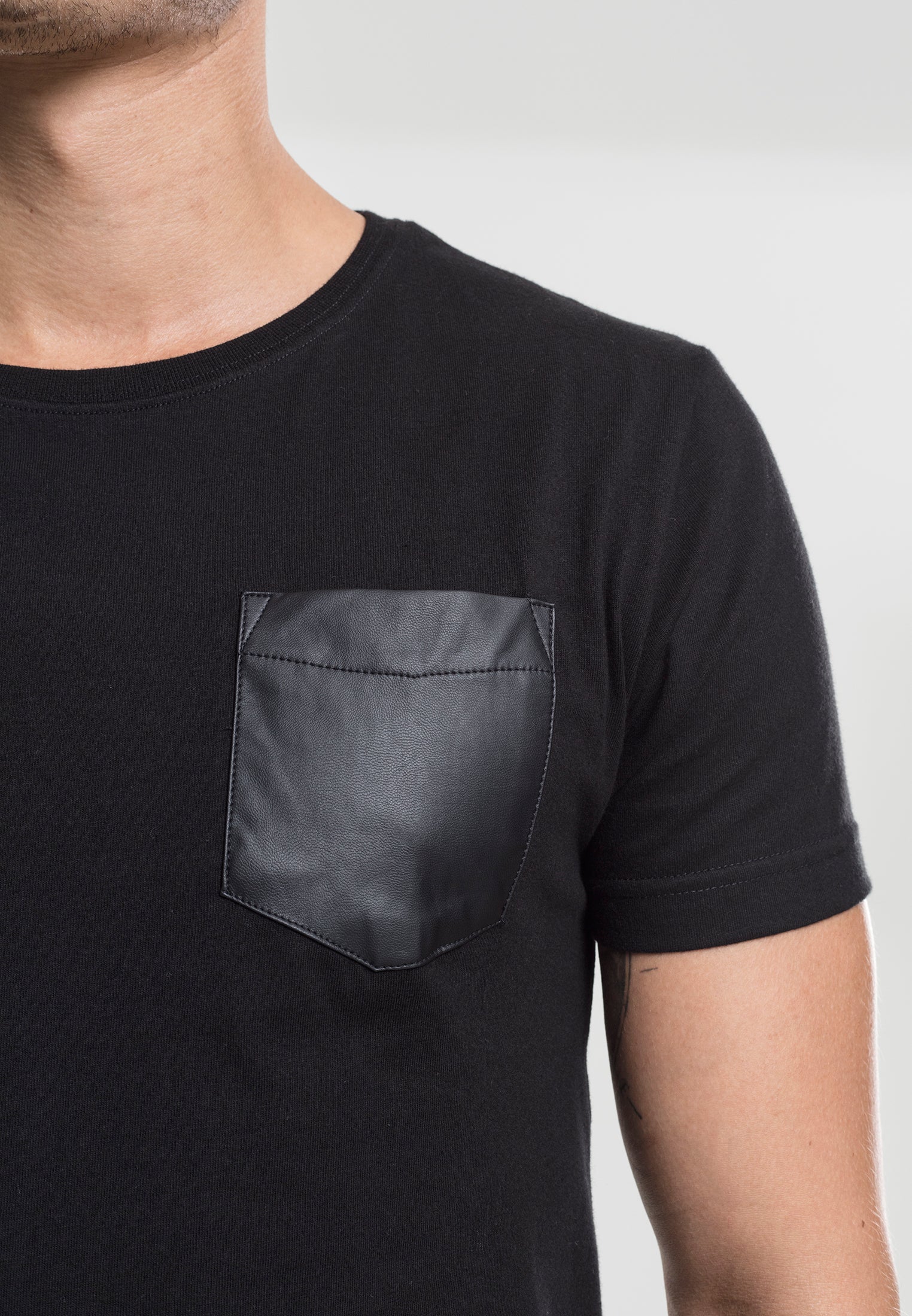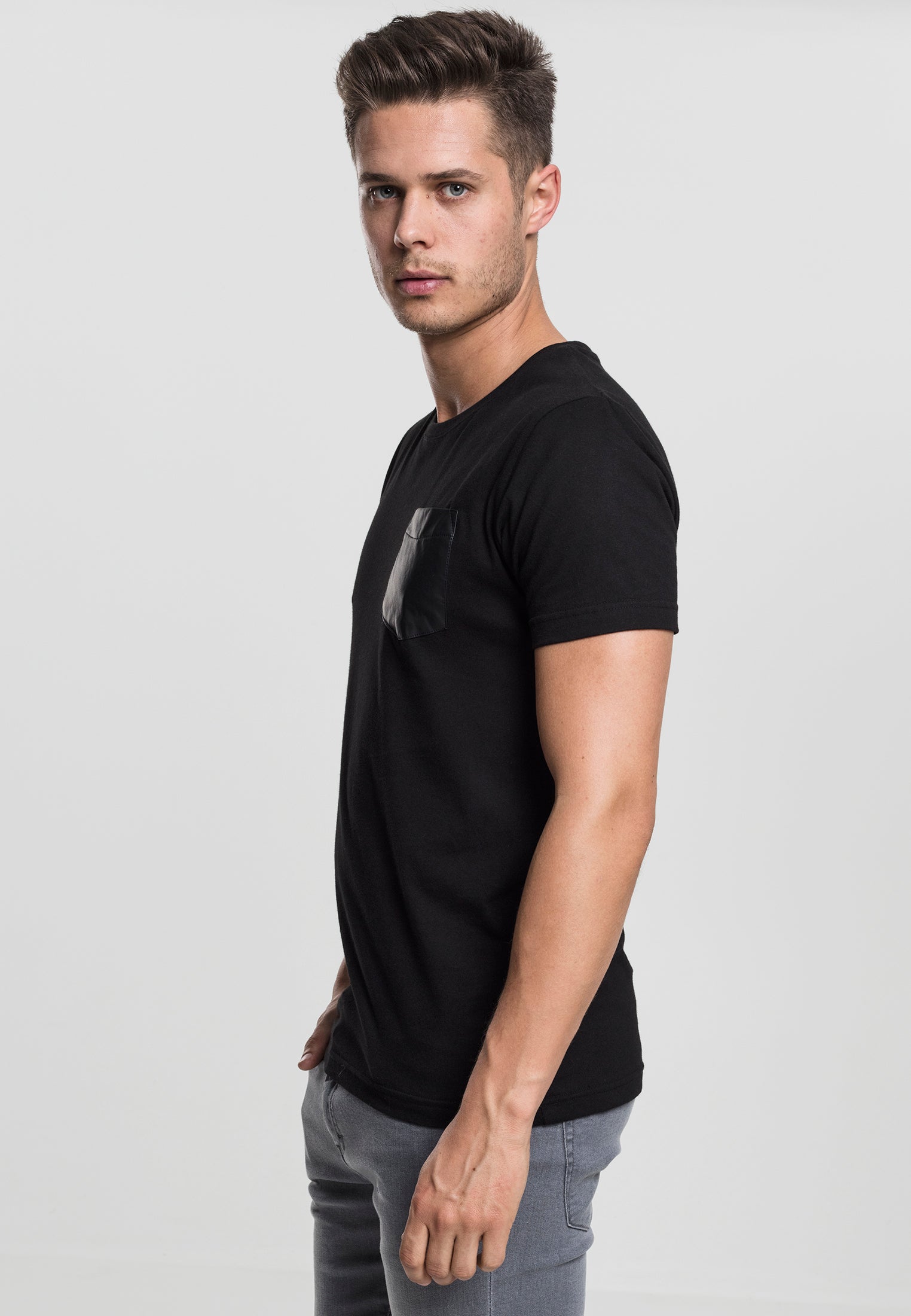 Vår Synthetic Leather Pocket Tee kompletterar den klassiska baströjan med en minimal detalj som gör hela skillnaden: Bröstfickan i syntetläder ger det där lilla extra.