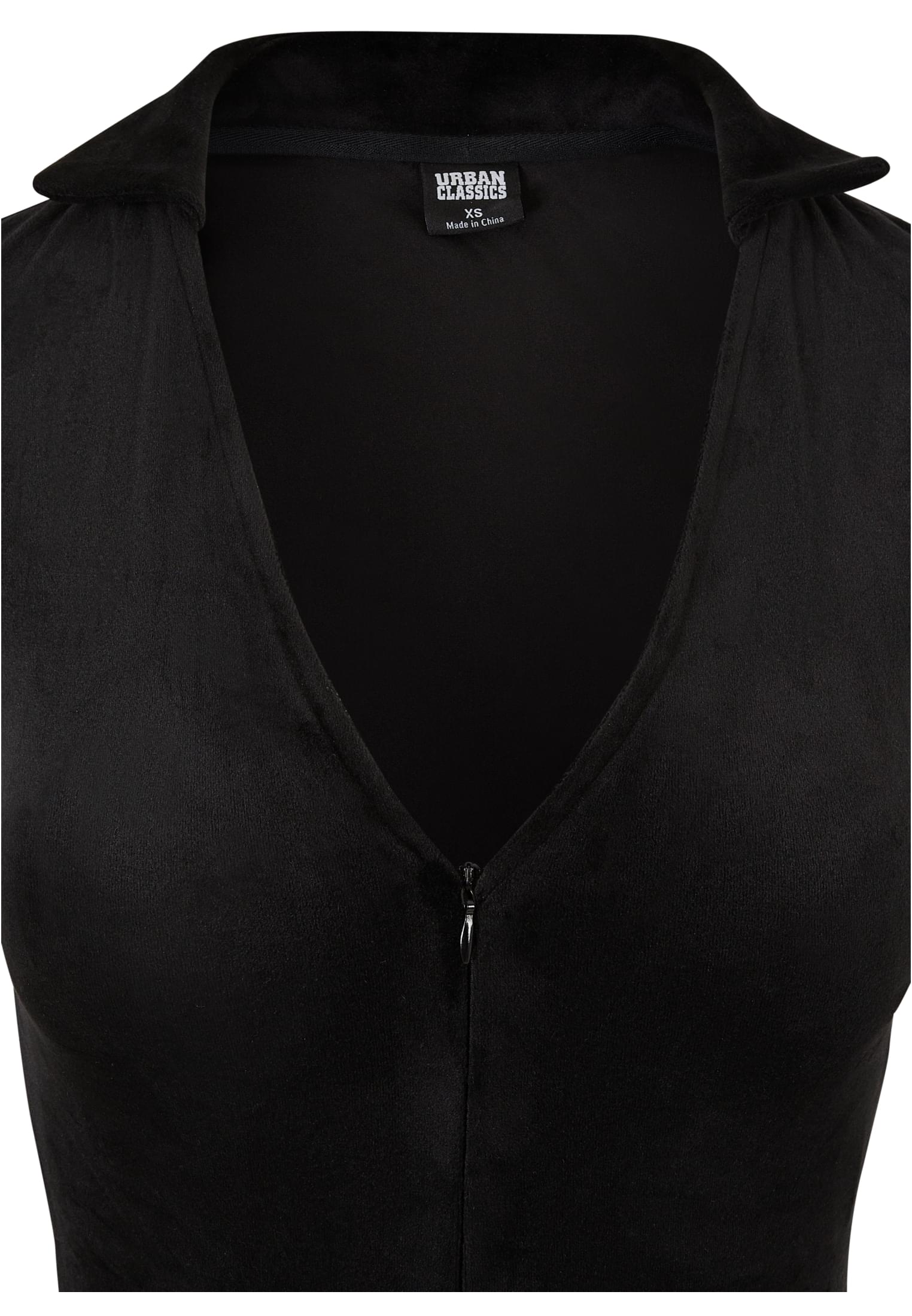 Denna slim fit jumpsuit har en modern skärning som skapar en fantastisk siluett. Den djupa V-ringningen fortsätter med en dragkedja, och en fin detalj är skjortkragen runt halsen. De lätt utsvängda, långa benen fulländar stilen. Tygvalet, ett mjukt och sammetsliknande material, ger ett härligt retroinspirerat utseende.