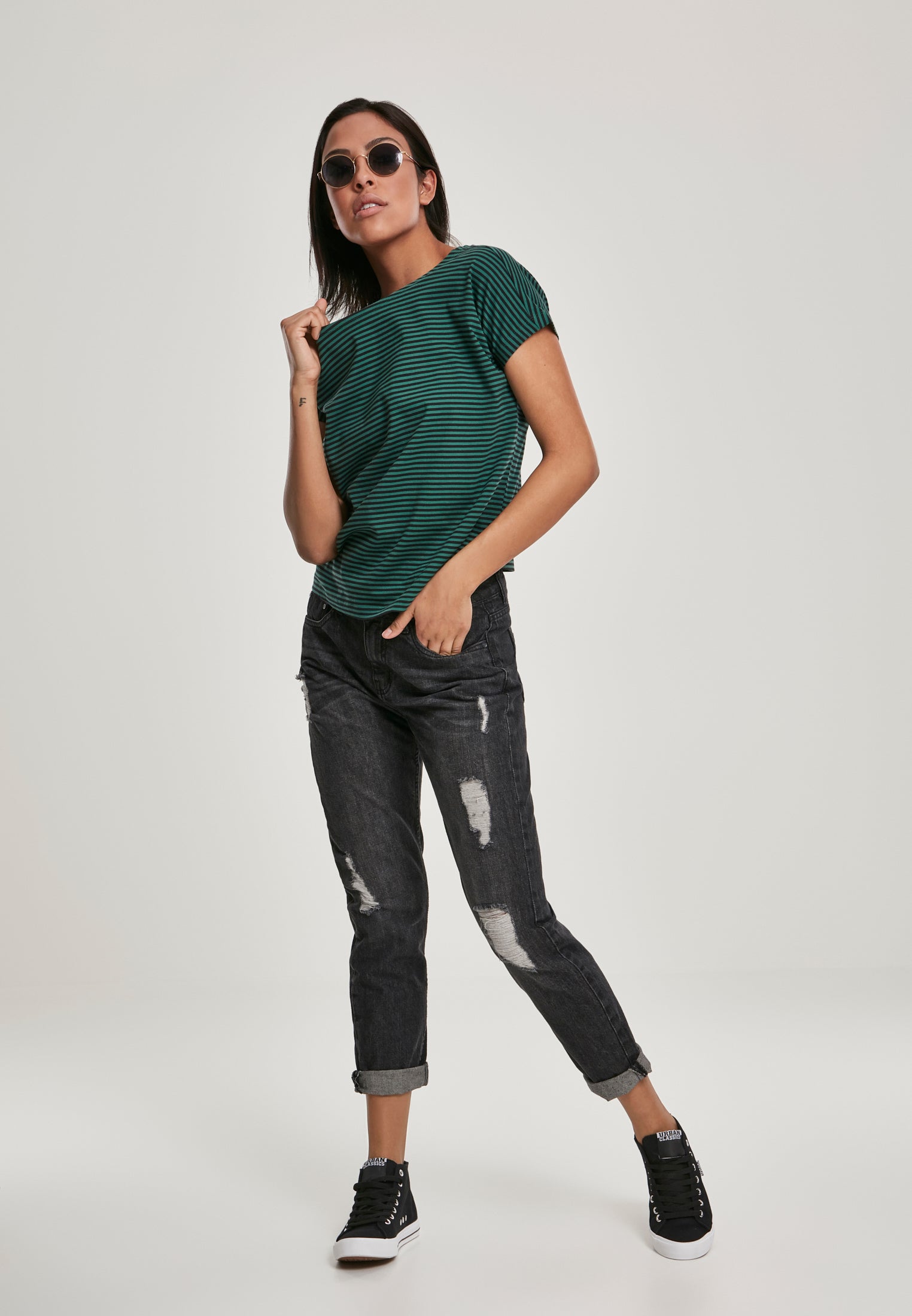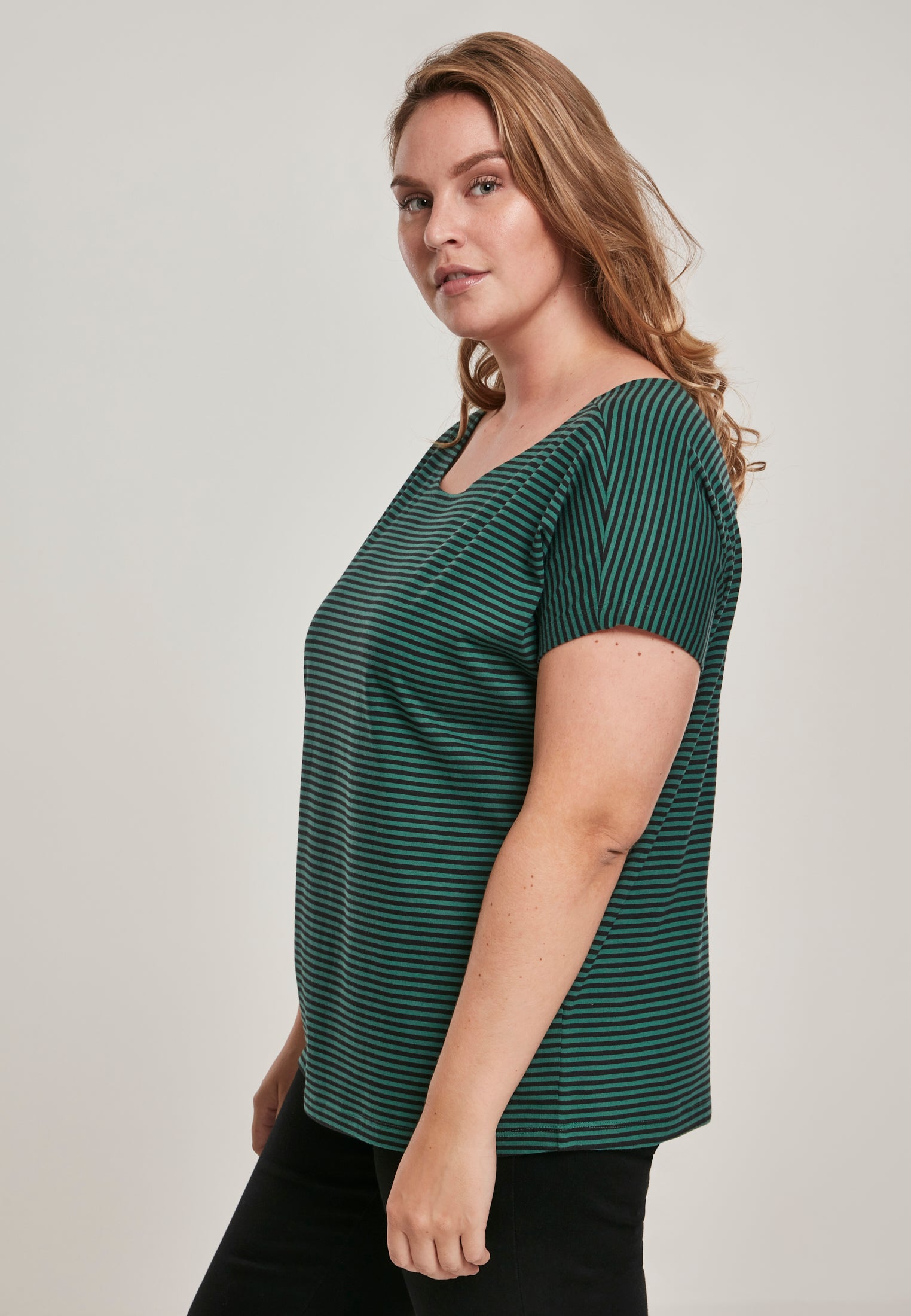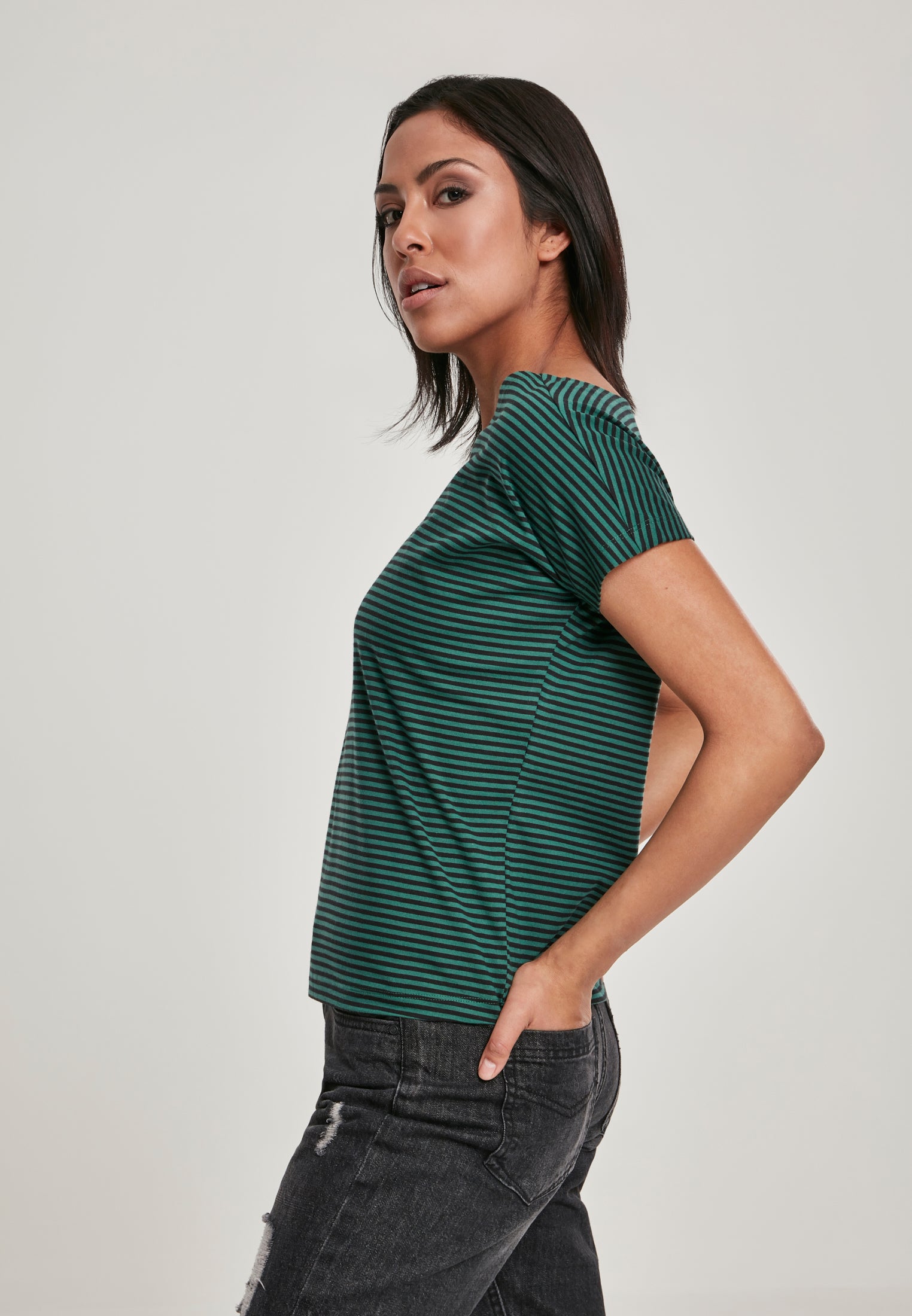Låt dig inte begränsas – välj istället streetstyle! Denna fräscha randiga t-shirt erbjuder ett livfullt utseende och maximal komfort. Den behagliga passformen med en vid rund hals och snedställda ärmar kompletteras perfekt av de konsekventa, smala horisontella ränderna. Ta på dig den och inget kommer stoppa dig denna sommar.